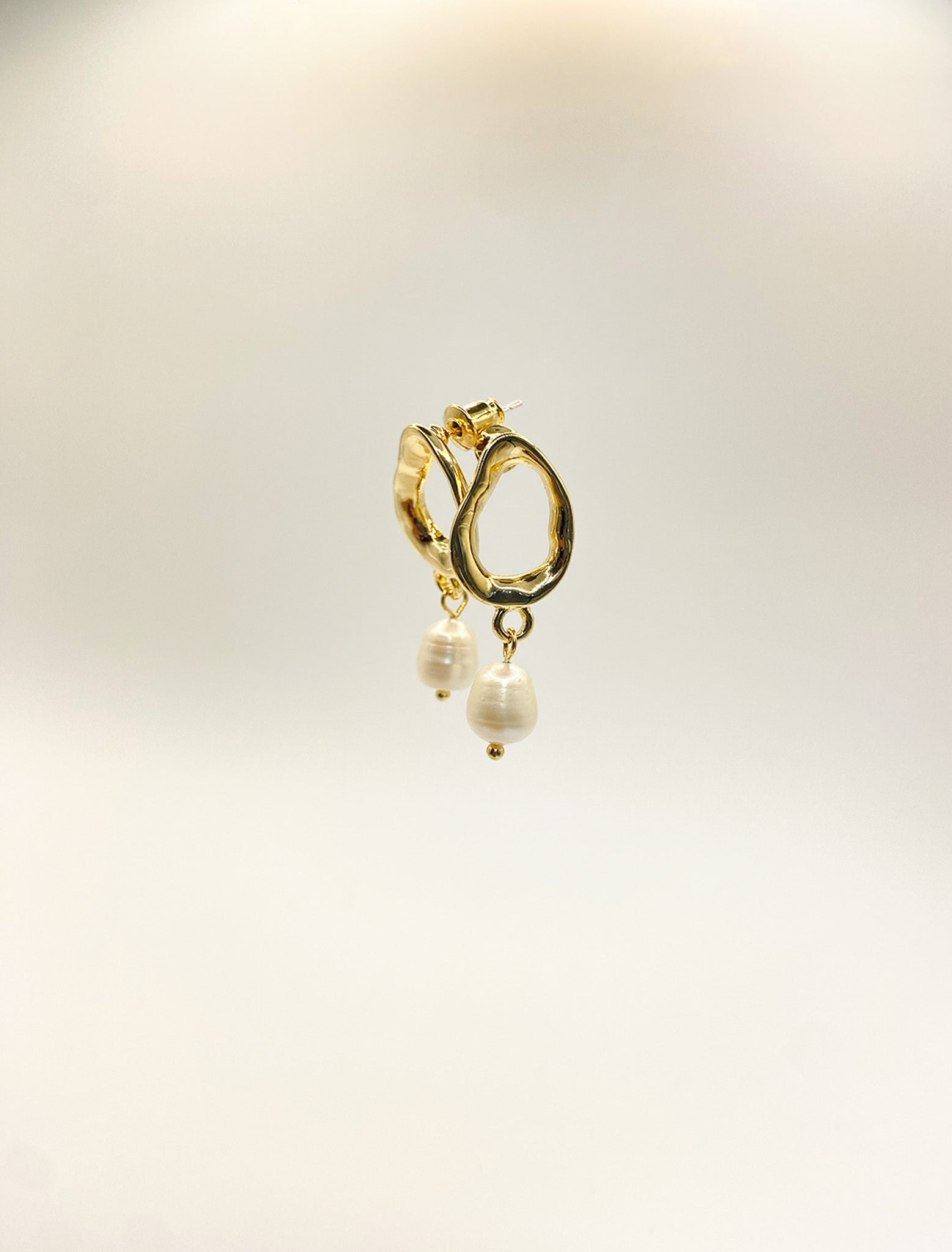 14K Gold plated Hammered freshwater pearl Earrings
