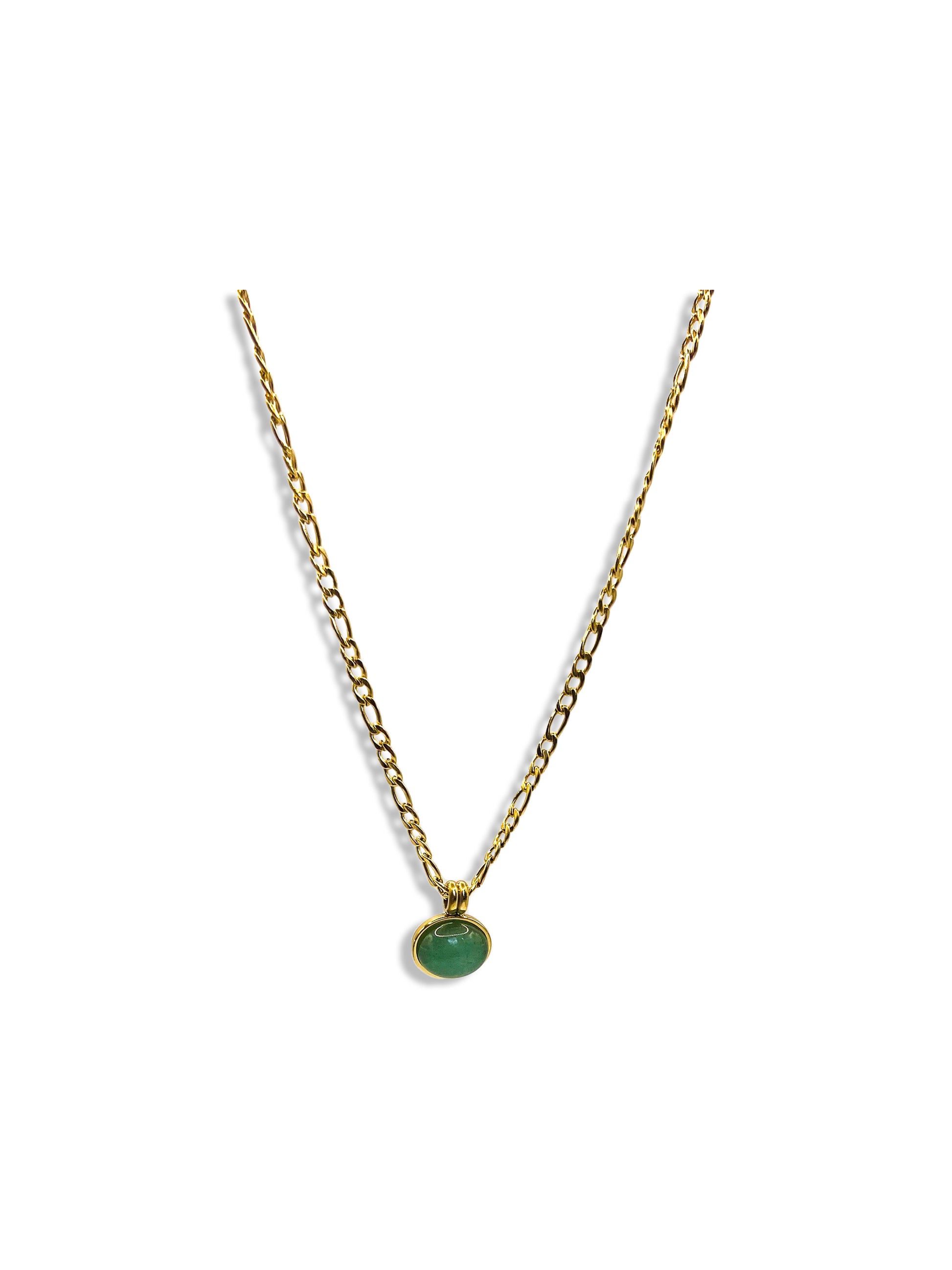Expertly crafted 14K Gold plated PVD Green Agate Necklace. Waterproof and hypoallergenic for a perfect blend of luxury and practicality. Tarnish-free for long-lasting wear.